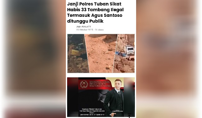 Baca berita sebelumnya : Mampukah Polres Tuban Ungkap Tambang Galian C Bertahun-tahun Aktivitas tanpa IUP OPK Lengkap https://jejakkasustv.com/mampukah-polres-tuban-ungkap-tambang-galian-c-bertahun-tahun-aktivitas-tanpa-iup-opk-lengkap/