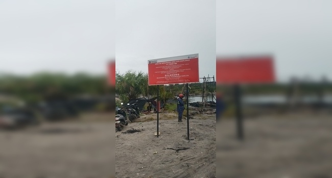 Terpampang terlihat dengan sudah sangat jelas dipasang plang bertuliskan dilarang melakukan aktifitas menambang tanpa izin. Dan Area ini merupakan area IUPK Eksplorasi PT. Timah Tbk, “tulisannya,
